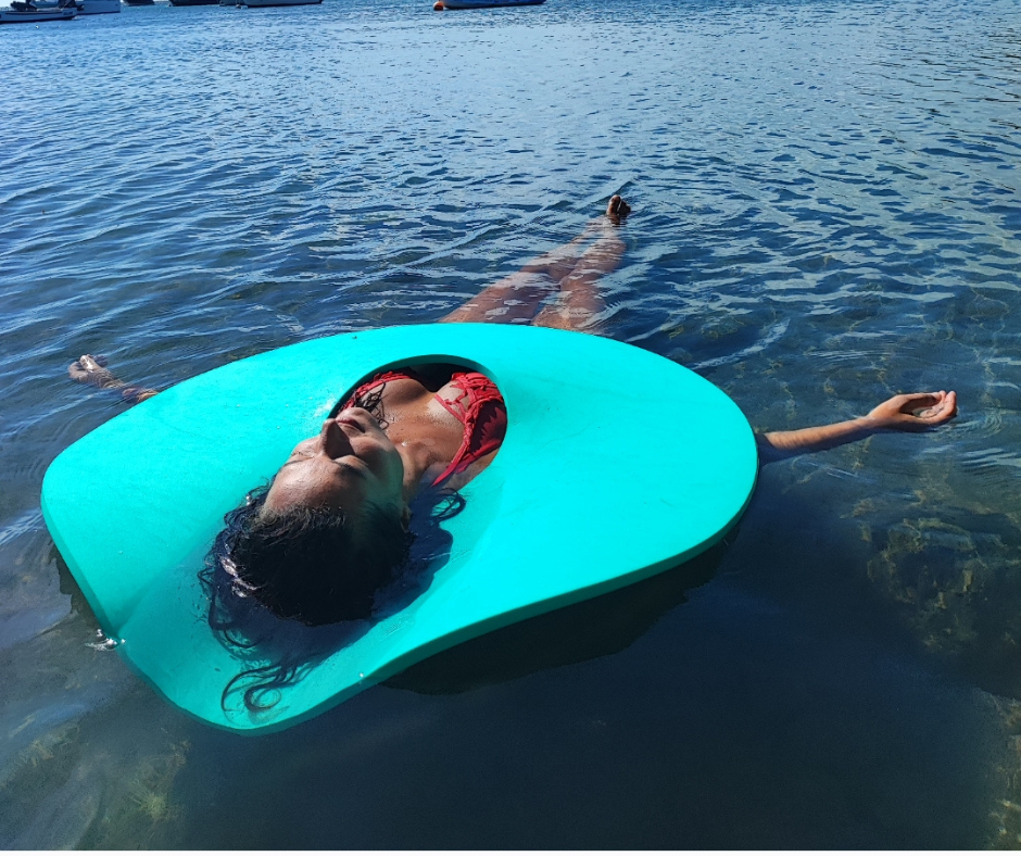 Séance de Sophrologie Aquatique hebdomadaire en groupe. Public adulte. Piscine chauffée en extérieur en Eté et en intérieur pendant l’hiver Austral.